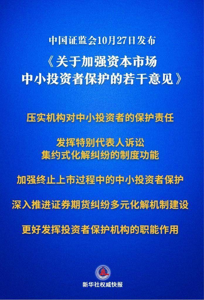 中国证监会10月27日发布《对于加强成本阛阓中小投资者保护的些许认识》。