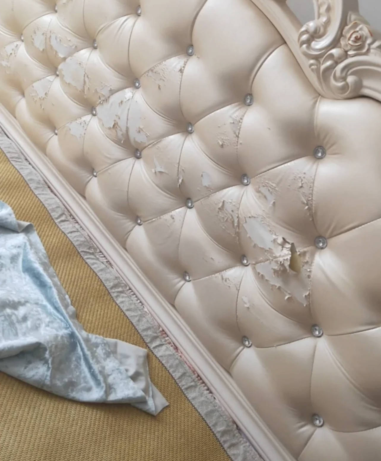 但就在我住了六七个月的时候,它名义就运行掉皮了,关节是我其时还莫得小孩,也没灵验硬物戳,我方就运行掉,并且越掉越严重,到我走的时候,就成下图这么式了。