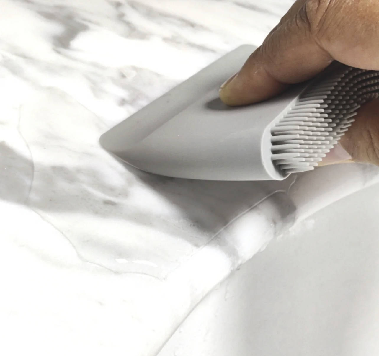 并且,齿状的这边,因为是硅胶的,比较软,清扫时根蒂使不上力,洗漱盆名义的头发也很难扫干净。