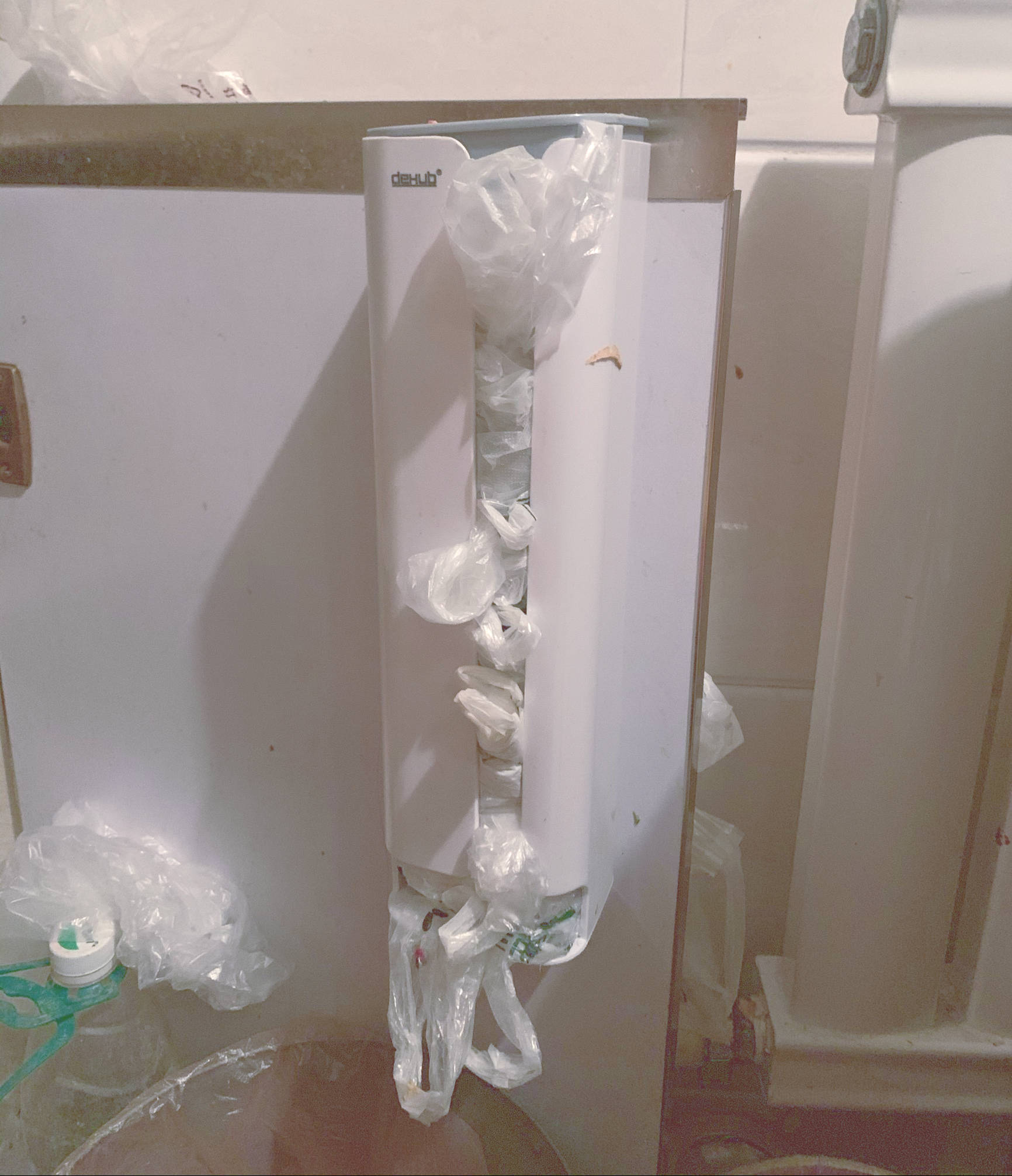 除非每次都能把垃圾袋折叠 的 寥落整王人,不然等于我家这种,还不如塞进抽屉呢,再乱抽屉一关,什么都看不见。