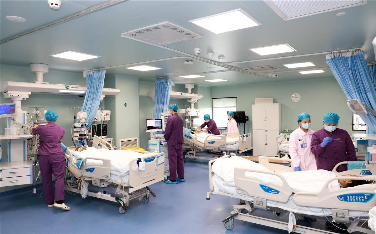 同济病院感染科病房内,大夫救治患者。(受访单元供图)