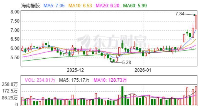1月29日,“橡胶龙头”海南橡胶10%涨停,股价创2018年以来新高。